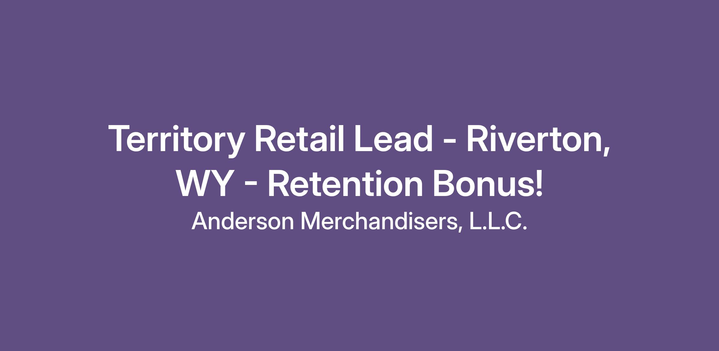 Territory Retail Lead - Riverton, WY - Retention Bonus!