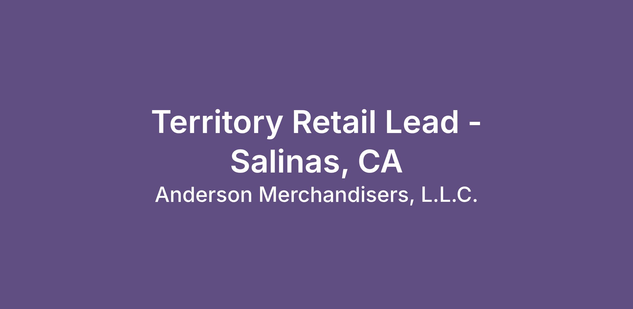 Train, supervise, and develop skills of Sales Merchandisers, fellow Territory Sales Leads, and seasonal associates