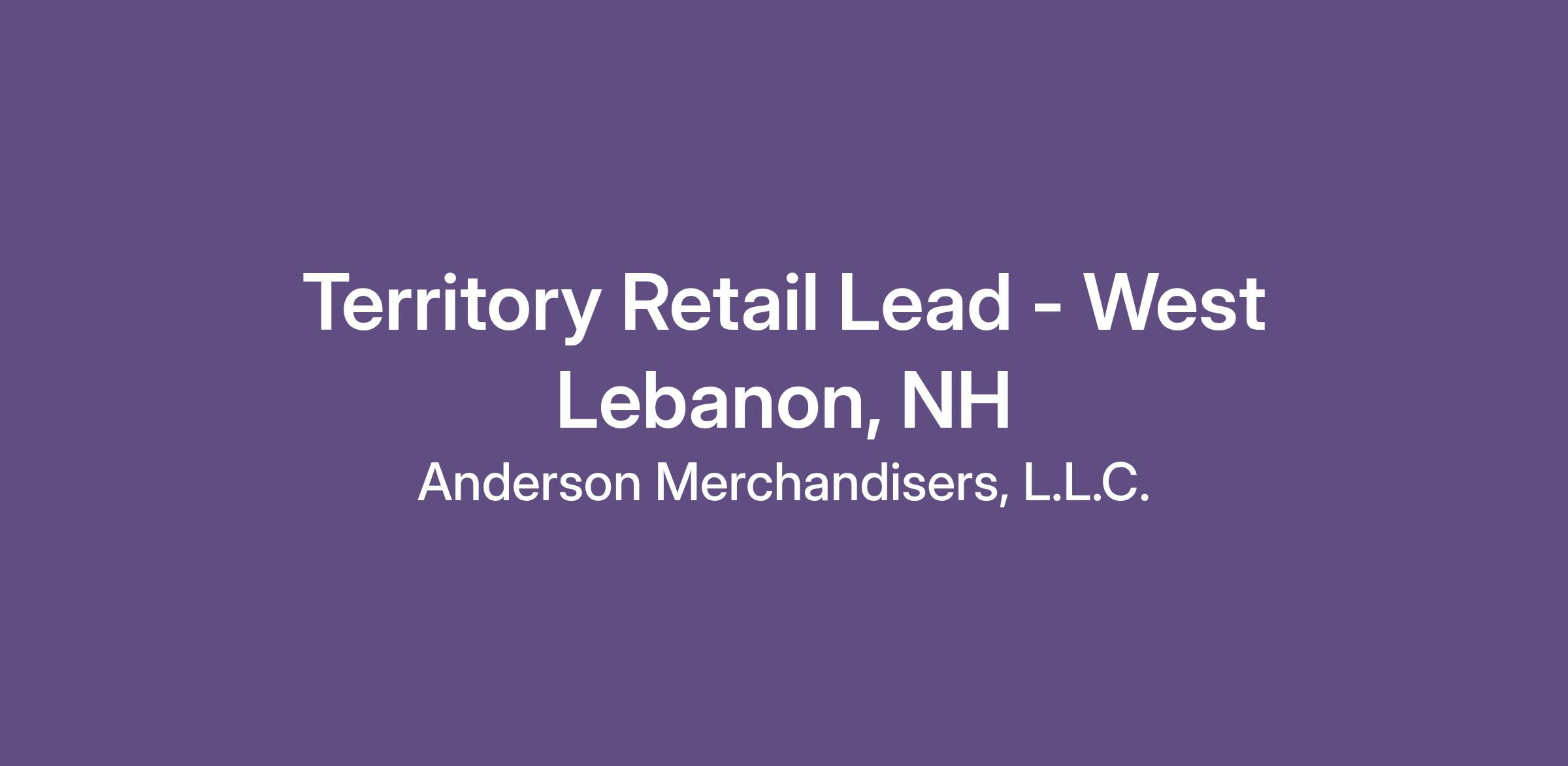Territory Retail Lead - West Lebanon, NH