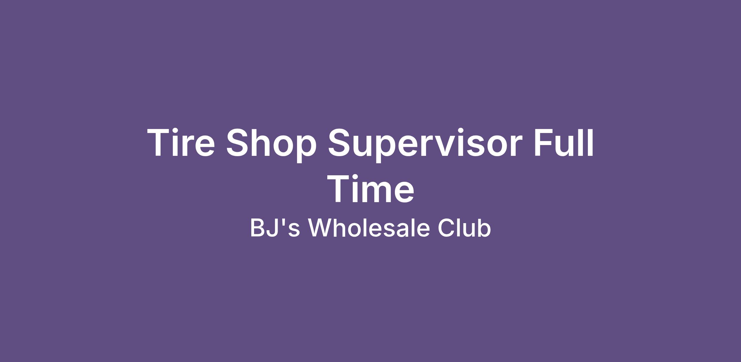 Tire Shop Supervisor Full Time