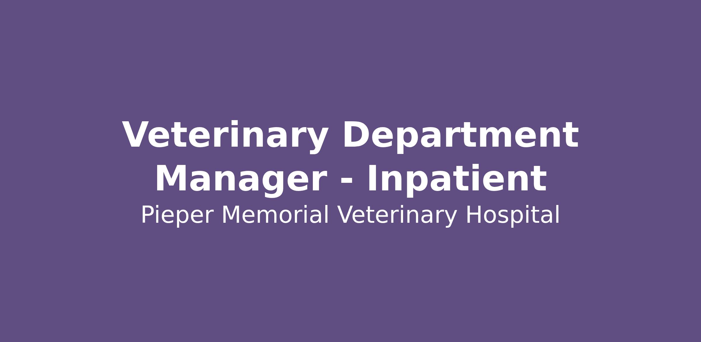 Pieper Memorial Veterinary Center is seeking a dedicated and skilled Department Manager to oversee the day-to-day operations of our Inpatient veterinary team. In this role, you will manage staff, ensure the delivery of exceptional patient care, and provide the resources and support needed for our clients, patients, and the entire Pieper team.