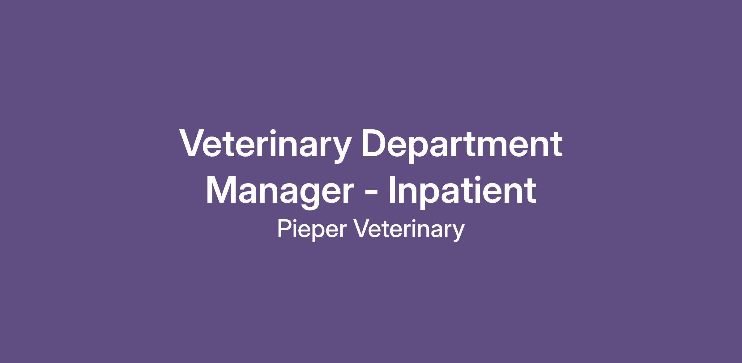Pieper Memorial Veterinary Center is seeking a dedicated and skilled Department Manager to oversee the day-to-day operations of our Inpatient veterinary team. In this role, you will manage staff, ensure the delivery of exceptional patient care, and provide the resources and support needed for our clients, patients, and the entire Pieper team.