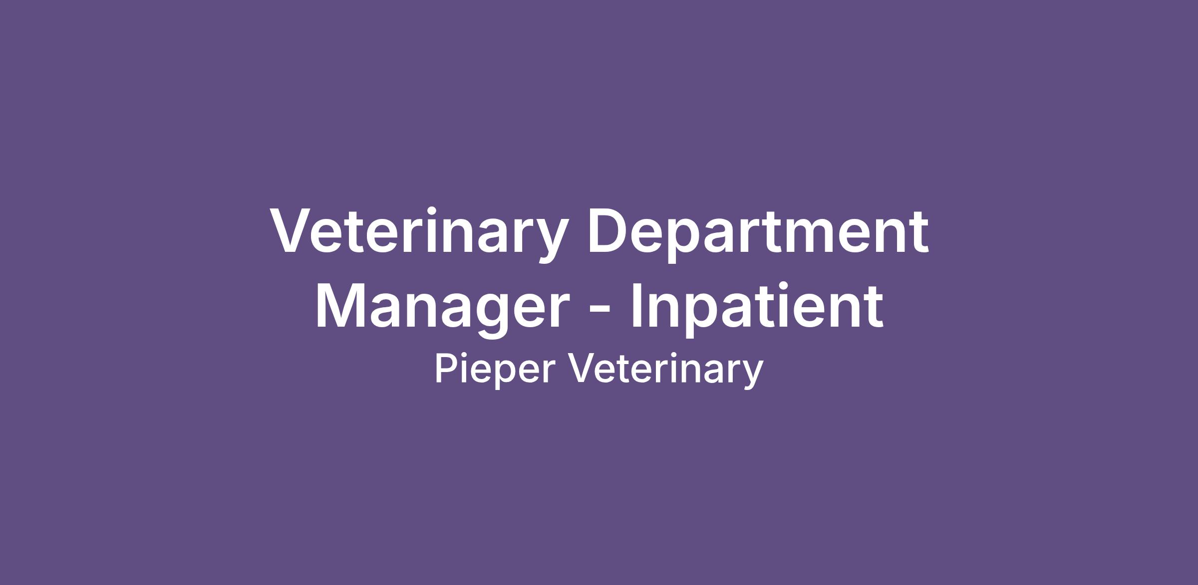 Pieper Memorial Veterinary Center is seeking a dedicated and skilled Department Manager to oversee the day-to-day operations of our Inpatient veterinary team. In this role, you will manage staff, ensure the delivery of exceptional patient care, and provide the resources and support needed for our clients, patients, and the entire Pieper team.