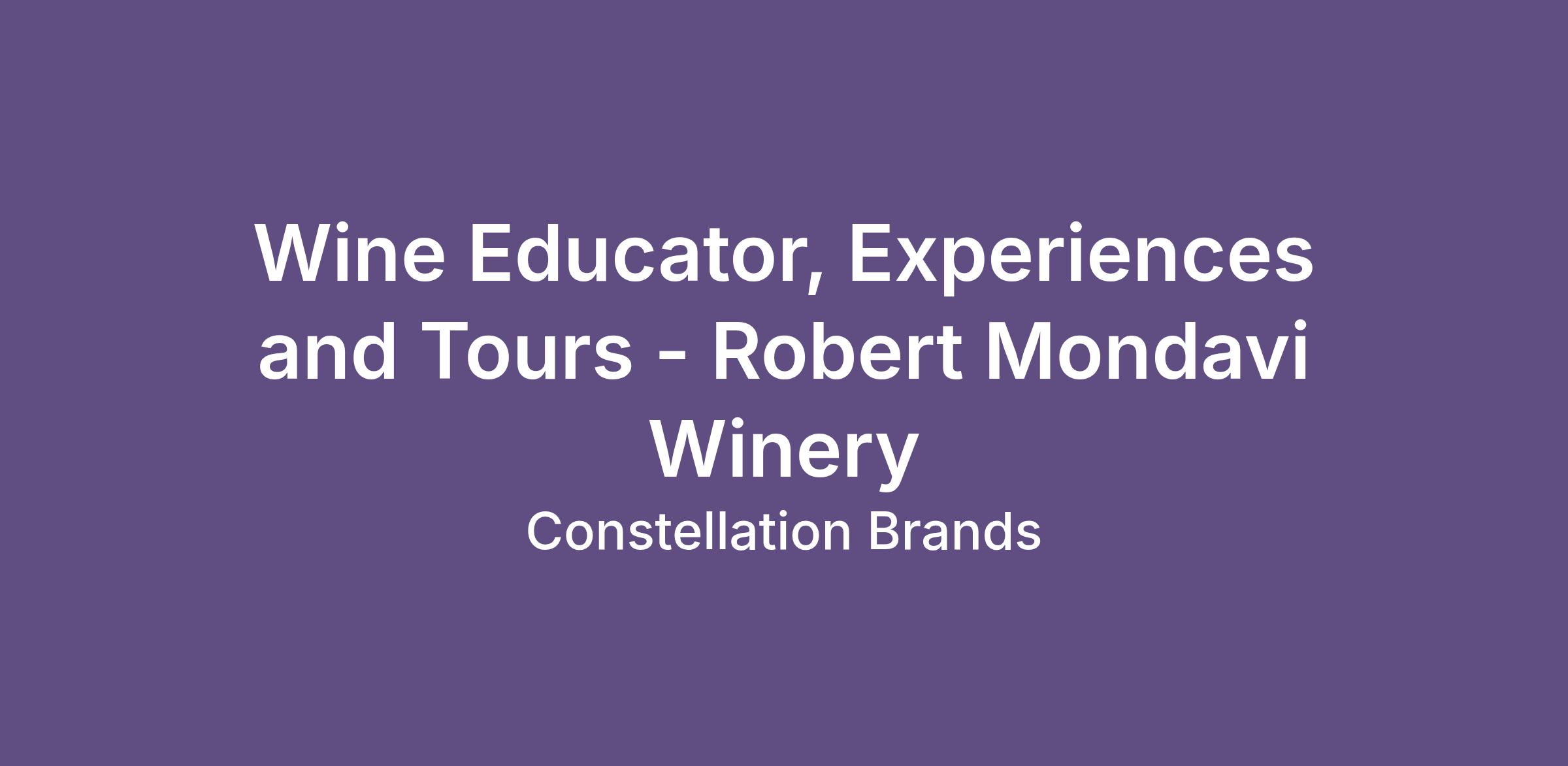 The Wine Educator & Tour Guide at Robert Mondavi Winery is a dynamic frontline ambassador responsible for delivering world-class wine education, public and private tastings, and immersive winery tours. This role is central to creating memorable guest experiences that reflect the iconic Robert Mondavi Winery brand and values of Constellation Brands. The Wine Educator & Tour Guide engages visitors with compelling storytelling, expert wine knowledge, and personalized service, ensuring every guest leaves with a deeper connection to our wines, heritage, and hospitality.